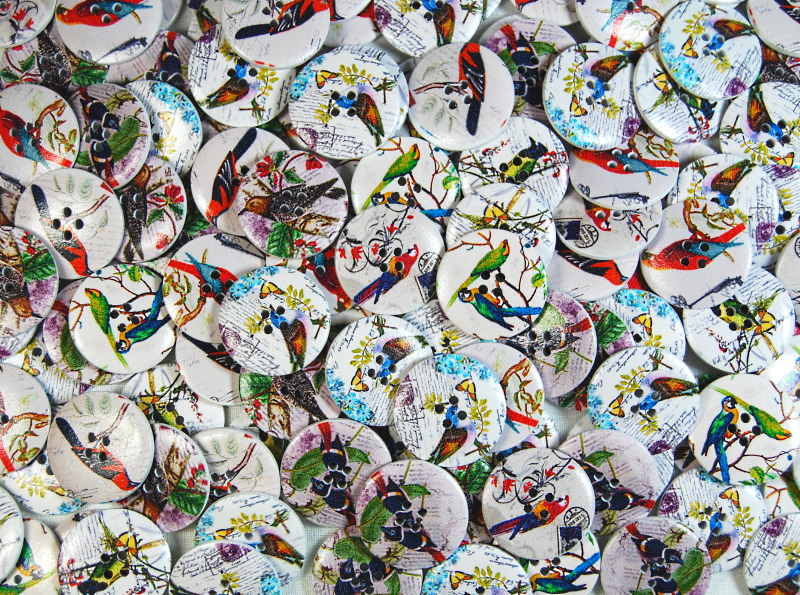 30mm Wooden Buttons – Mixed Birds