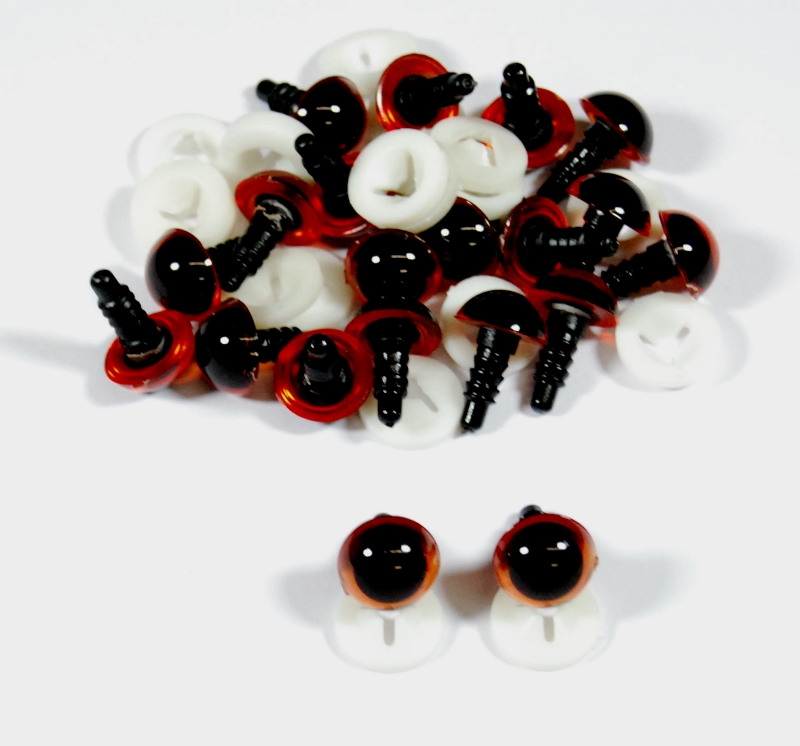 Pack of 10 Pairs – 9mm DARK AMBER Transparent Eyes with Plastic Backs