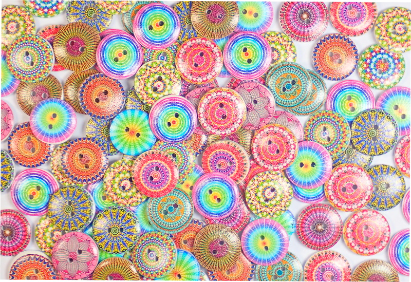 Printed Wooden Buttons – 20mm 60’s Pattern
