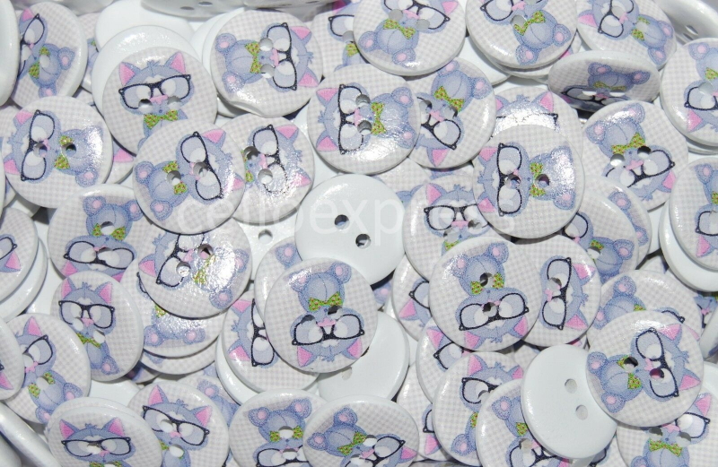 Children’s Printed Wooden Buttons (Cat – 20mm)
