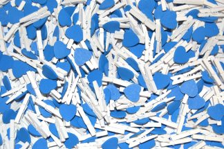 Pack of 100 – 30mm Blue Love Heart Mini Wooden White Pegs