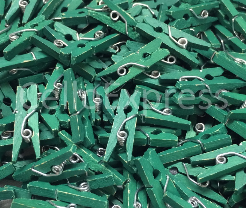 Pack of 100 – 35mm Bottle Green Mini Wooden Craft Pegs