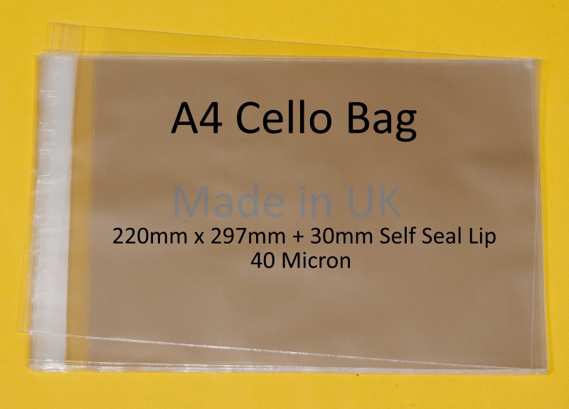 Pack of 100 – A4 Cello – 220mm x 297mm + 30mm Self Seal Flap – Cellophane Artist Size Display Bags 40 Micron – Large Cello