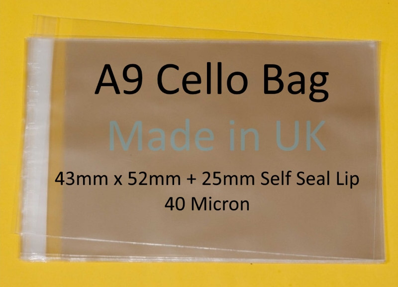 Pack of 100 – A9 Cello – 43mm x 52mm + 25mm Self Seal Flap – Cellophane Artist Size Display Bags 40 Micron – Tiny Cello