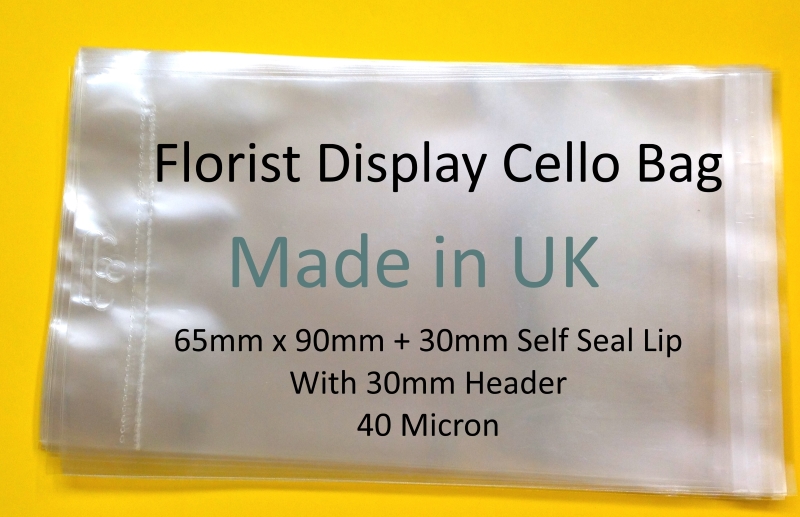 Pack of 100 – EUROSLOT Florists Card – 65mm x 90mm + 30mm Header with Euroslot – 40 Micron Cellophane Clear Display Bags Self Seal – Small Cello