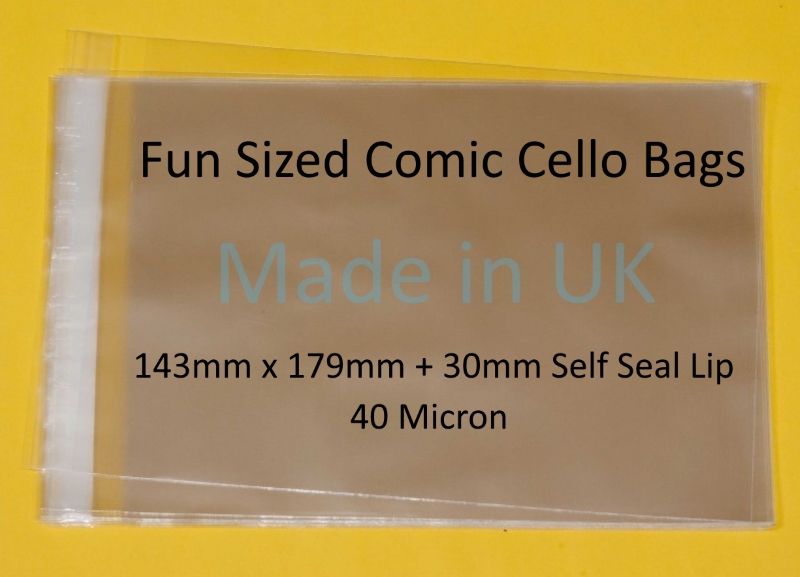 Pack of 100 – Fun Sized Comic – 143mm x 179mm + 30mm Self Seal Flap – Cellophane Display Bags 40 Micron – Medium Cello
