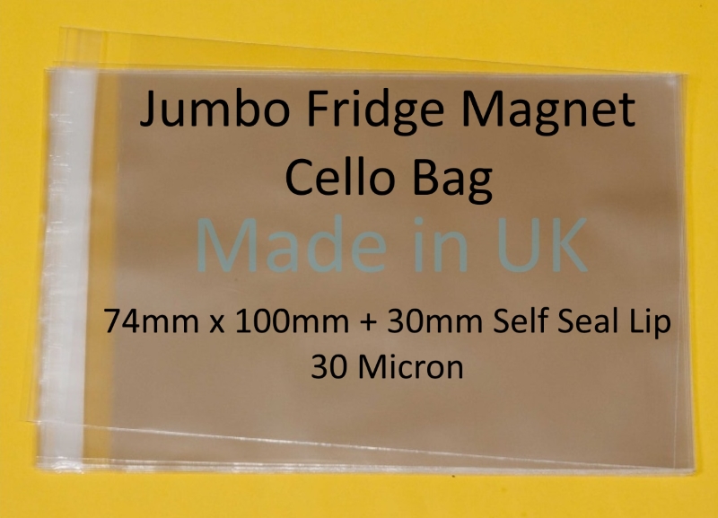 Pack of 1,000 – Jumbo Fridge Magnets Cello Display Bags – 74mm x 100mm + 30mm Self Seal Flap 40 Micron