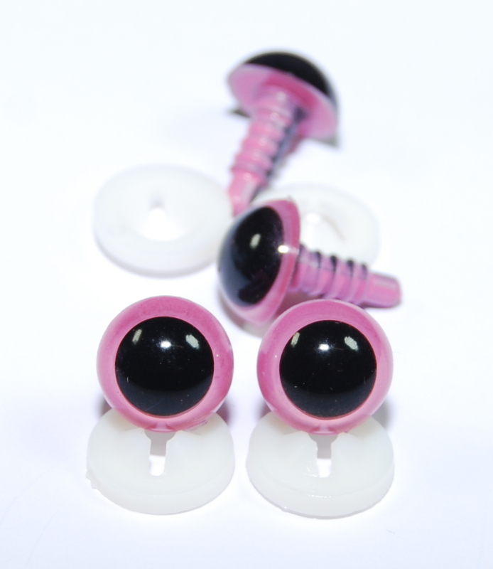 Pack of 2 Pairs – 12mm Pink Eyes with Plastic Backs