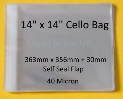 Pack of 200 – 14″ x 14″ – 363mm x 356mm + 30mm Self Seal Flap – 14×14 Mounted Photograph Cellophane Display Bags 40 Micron – Large Cello