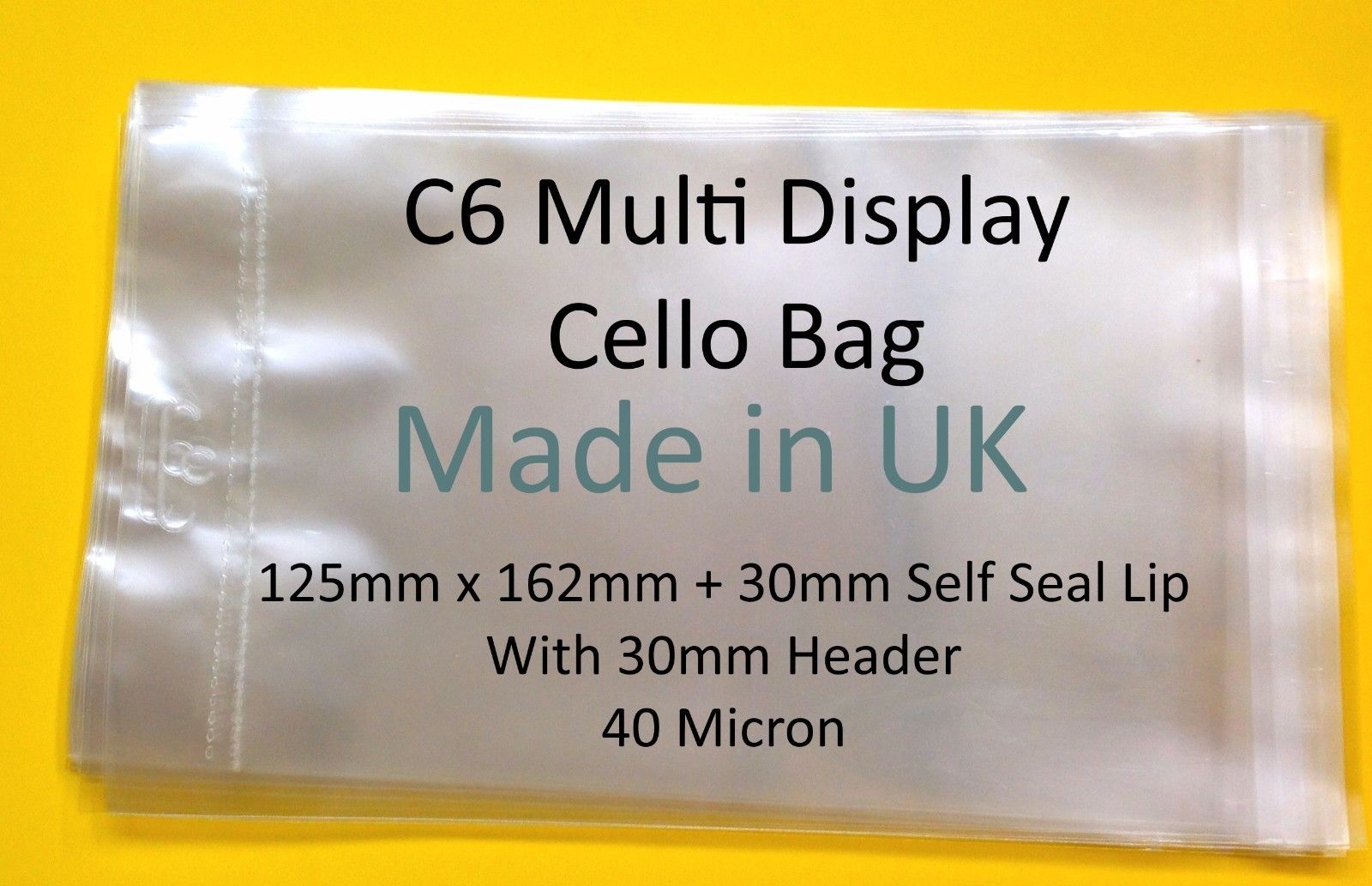 Pack of 2000 – EUROSLOT Multi C6 – 125mm x 162mm + 30mm Header with Euroslot – 40 Micron Cellophane Clear Display Bags Self Seal – Small Cello