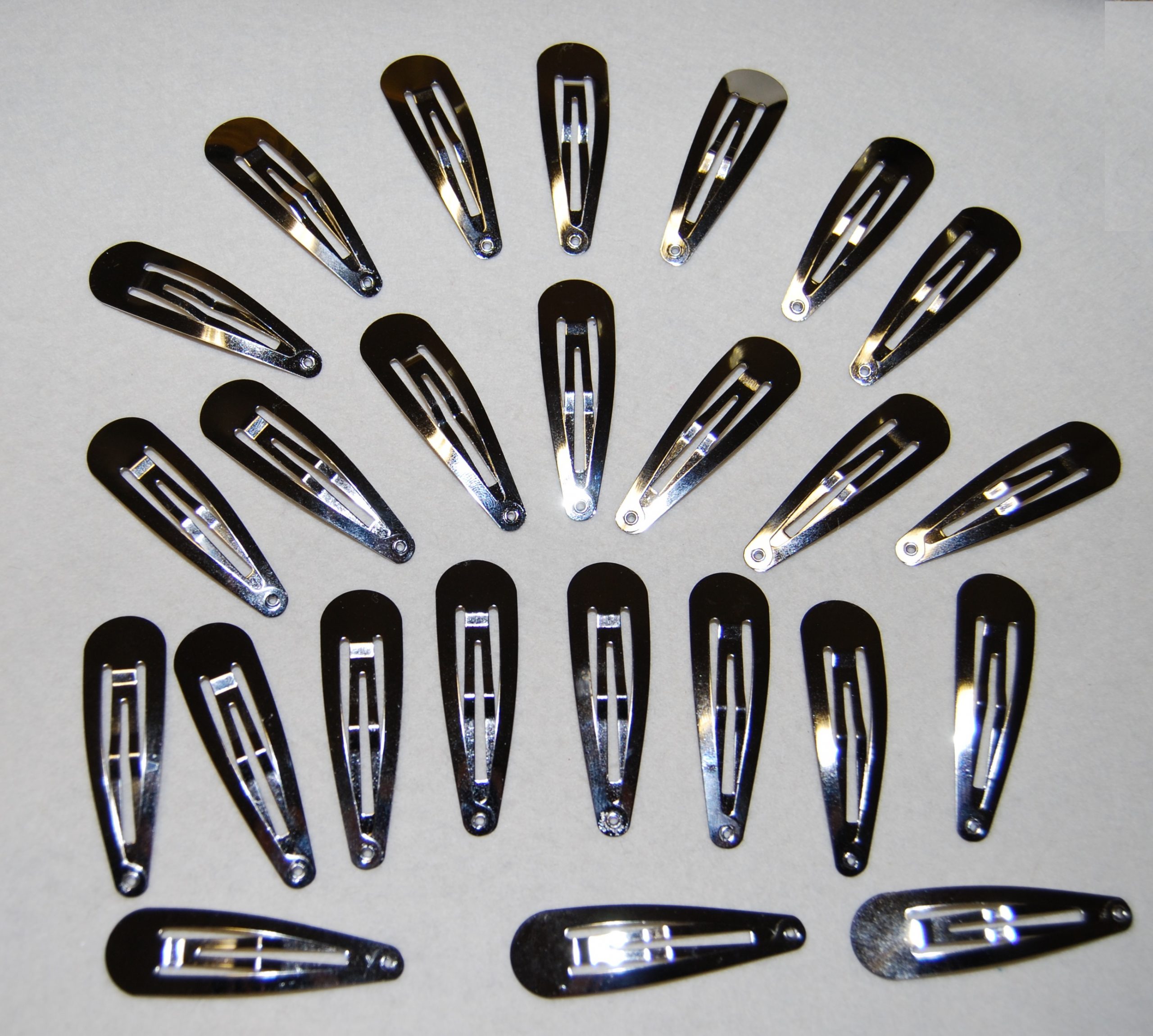 Pack of 25 – 30mm Silver NO HOLES Snap Hair Clips