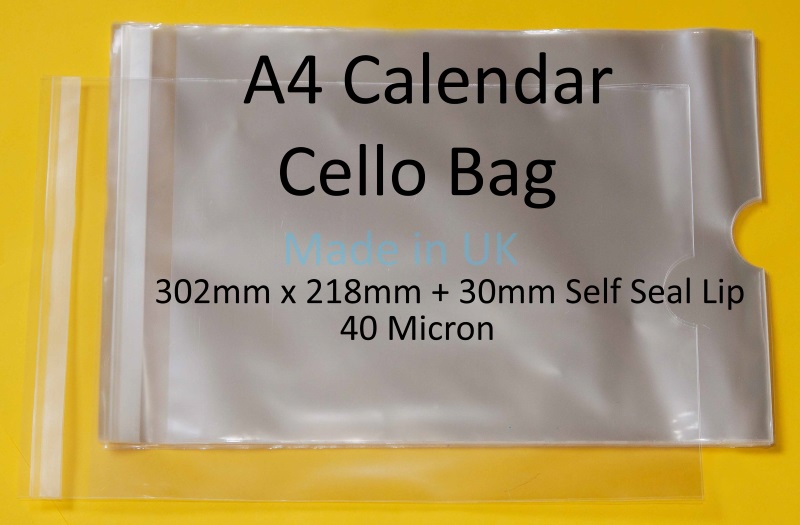 Pack of 25 – Calender A4 – 218mm x 302mm + 30mm Flap Cellophane Display Bags Self Seal 40 Micron – Large Calendar Cello