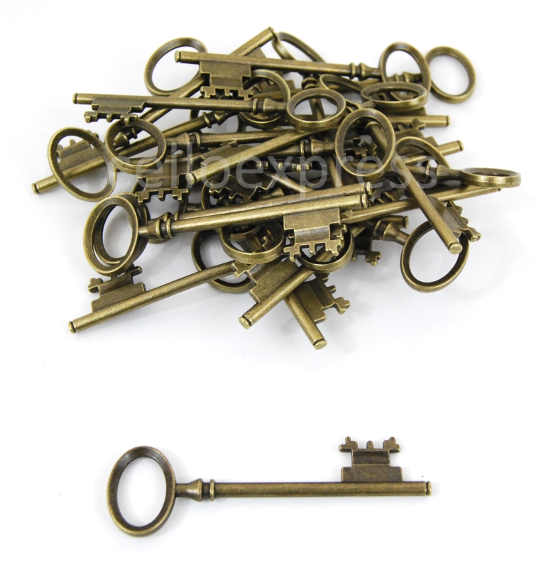 Pack of 25 – Pendant Keys – Antique Bronze – Metal Charms Steampunk