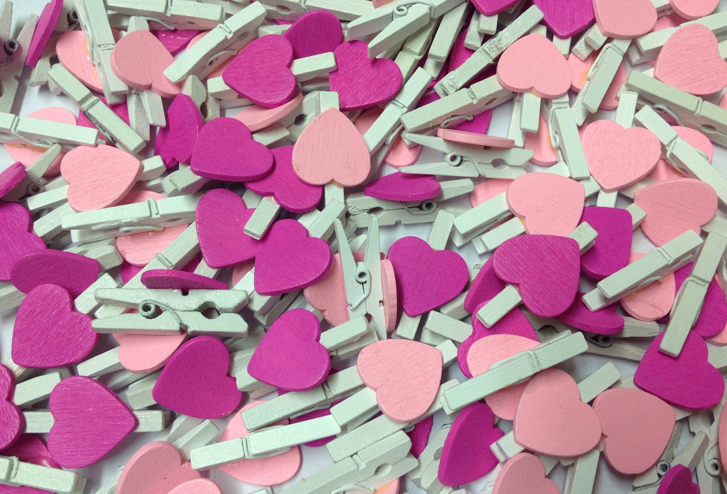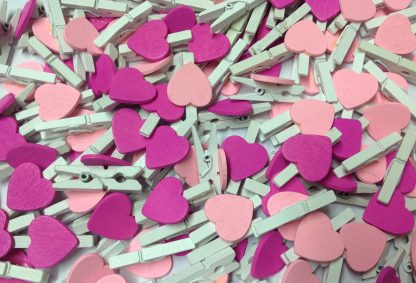 Pack of 25 – 30mm Pink Mix Hearts on White Pegs