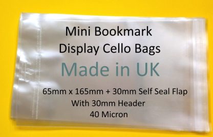 Pack of 250 – EUROSLOT Mini Bookmark – 65mm x 165mm + 30mm Header with Euroslot – 40 Micron Cellophane Clear Display Bags Self Seal – Small Cello