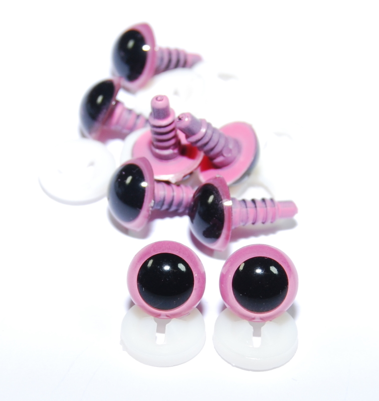 Pack of 4 Pairs – 12mm Pink Eyes with Plastic Backs