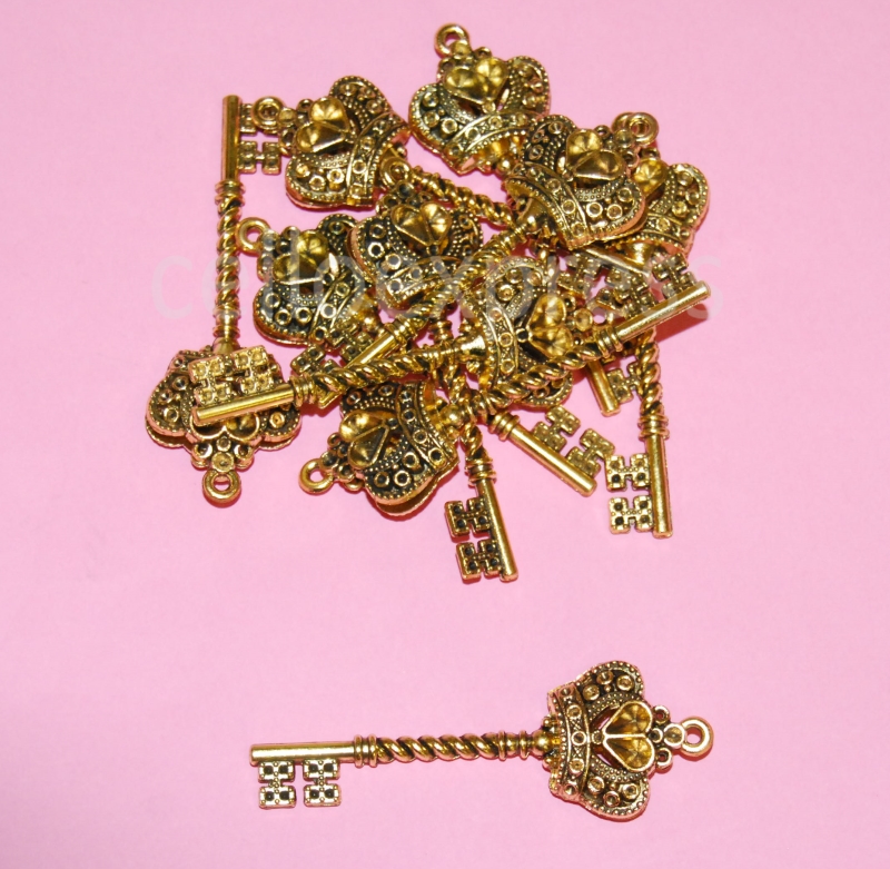 Gold Crown & Heart – Keys Metal Charms Steampunk