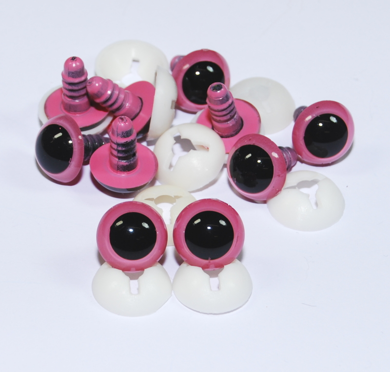 Pack of 5 Pairs – 15mm Pink Eyes with Plastic Backs