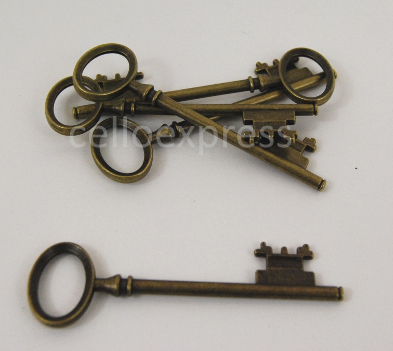 Pack of 5 – Pendant Keys – Antique Bronze – Metal Charms Steampunk