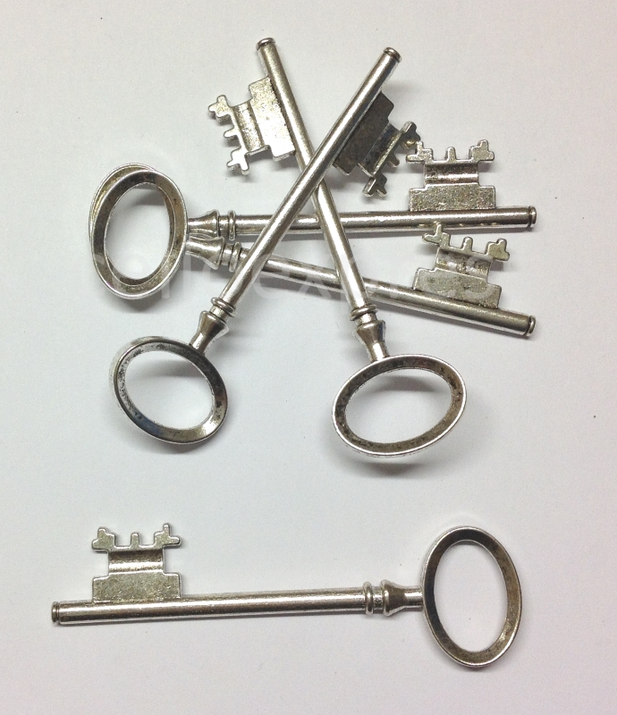 Pack of 5 – Pendant Keys – Antique Silver – Metal Charms Steampunk