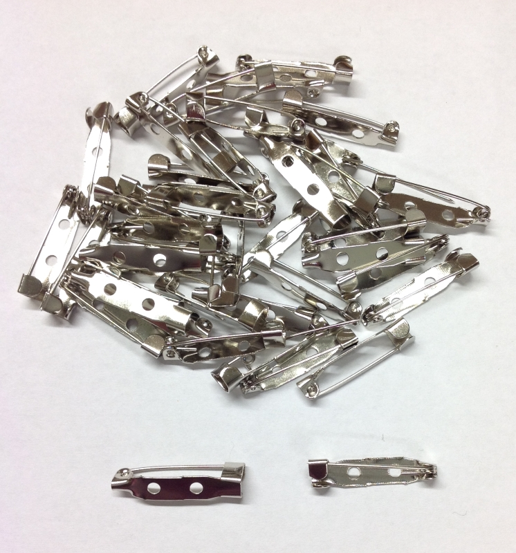 Pack of 5 – Platinum Brooch Pins – 25mm x 5mm – Hook Catch – 2 Holes