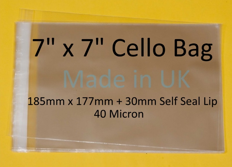 Pack of 50 – 7″ x 7″ – 185mm x 177mm + 30mm Self Seal Flap -7×7 Mounted Photograph Cellophane Display Bags 40 Micron Medium Cello