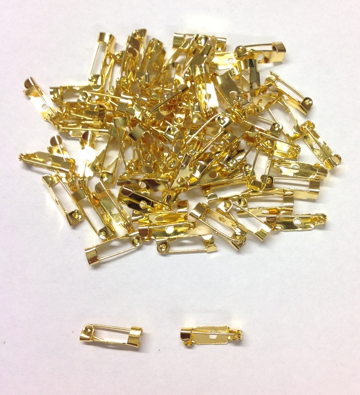 Pack of 50 – Golden Brooch Pins – 15mm x 6mm with 1 hole – Hook Catch