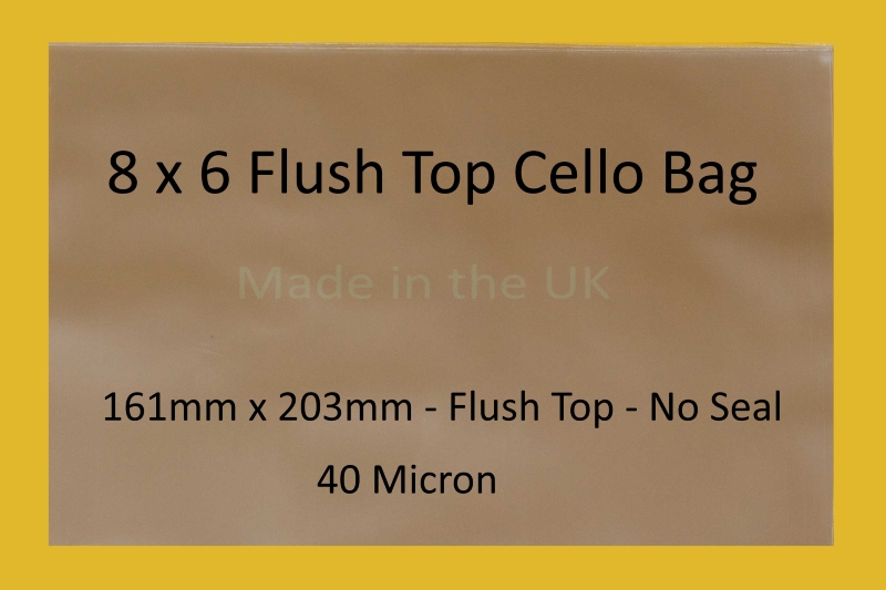 Pack of 500 – FLUSH TOP 8″ x 6″ – 161mm x 203mm Flush Top Cello Display Bags
