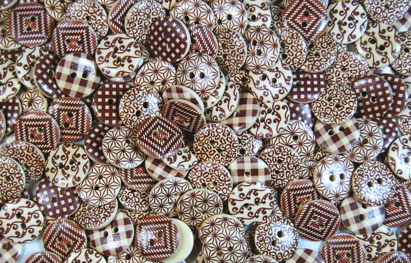 Printed Wooden Buttons – 15mm Brown Multi Patterned