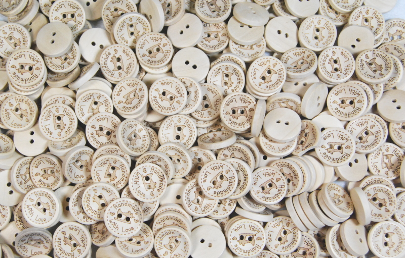 Printed Natural Wooden Buttons – 15mm Handmade with Love – Sewing Machine