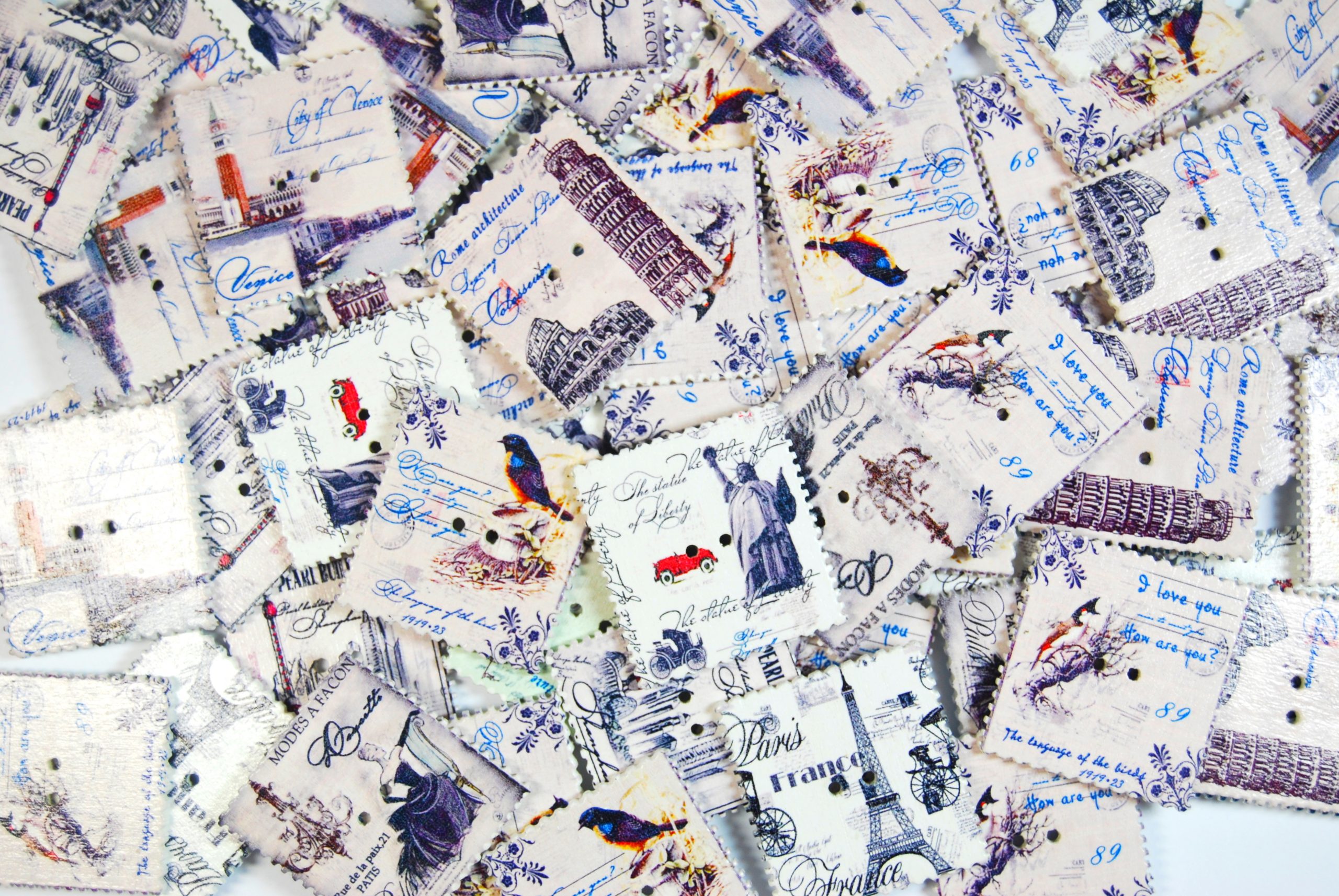 Wooden Printed Buttons (Stamps Type 1, 35mm)