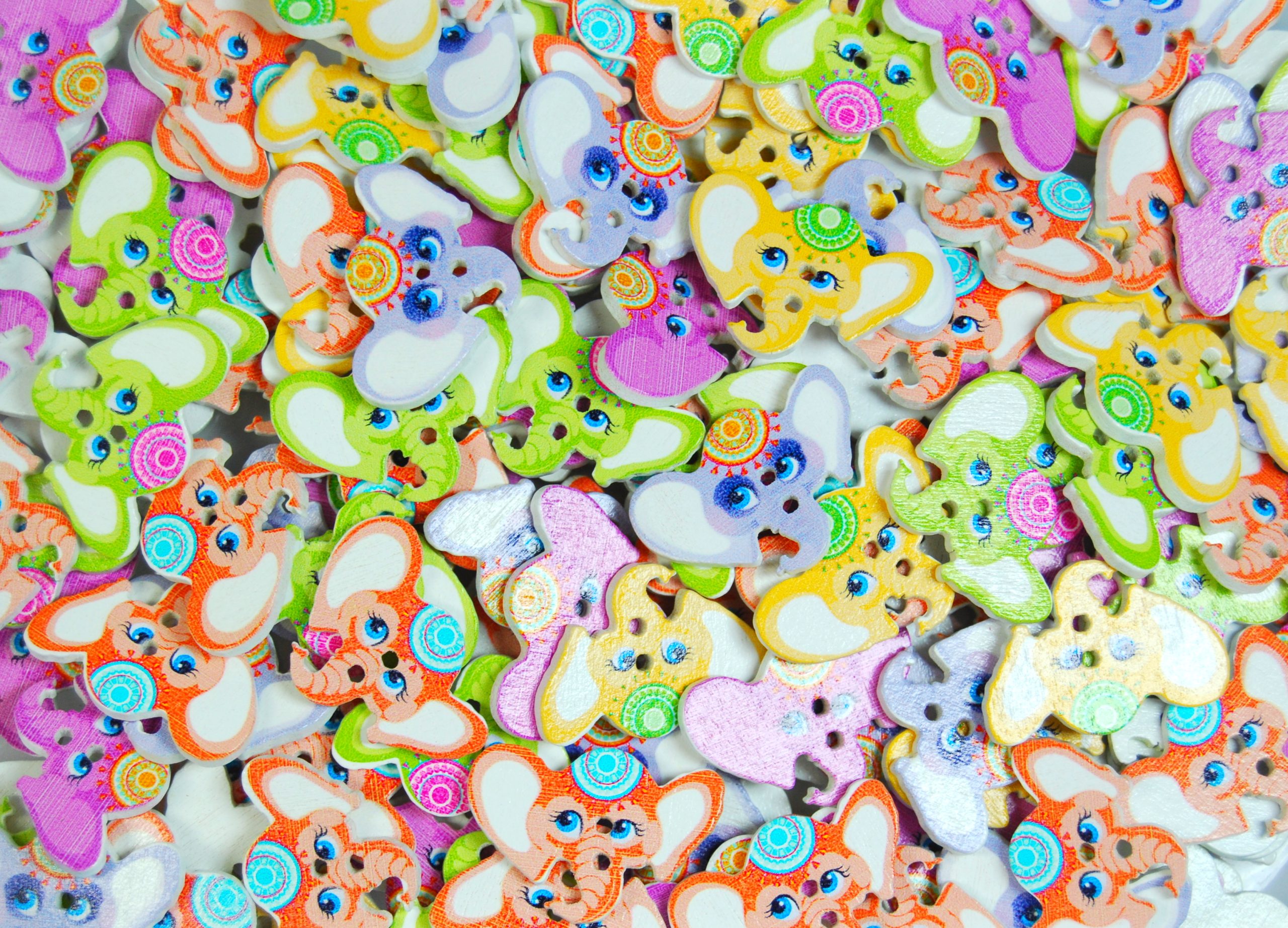 Childrens Character Printed Wooden Buttons (Elephant Type 1 – 27mm)