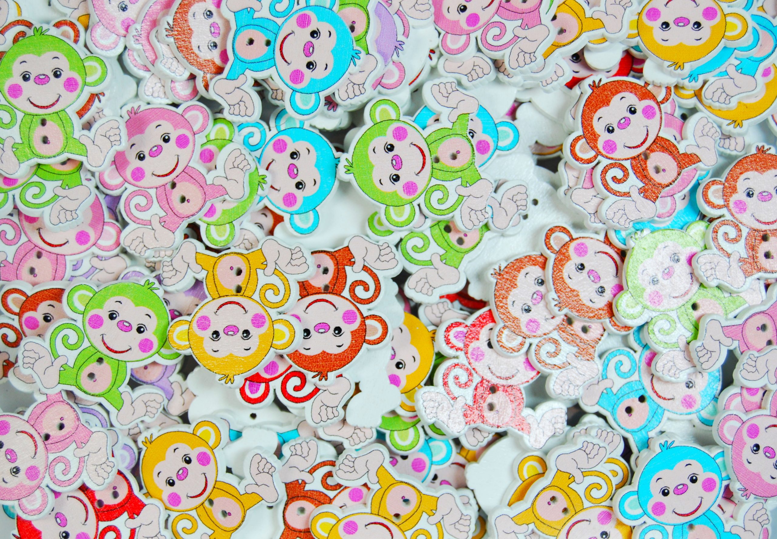Childrens Character Printed Wooden Buttons (Monkey Type 1 – 30mm)