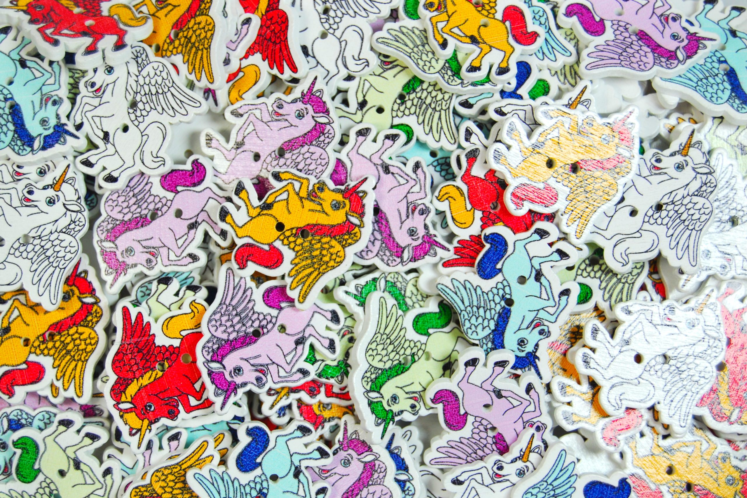 Childrens Character Printed Wooden Buttons (Pegasus Type 1 – 32mm)