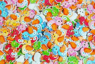 Childrens Character Printed Wooden Buttons (Baby Bottle Type 1 – 28mm)