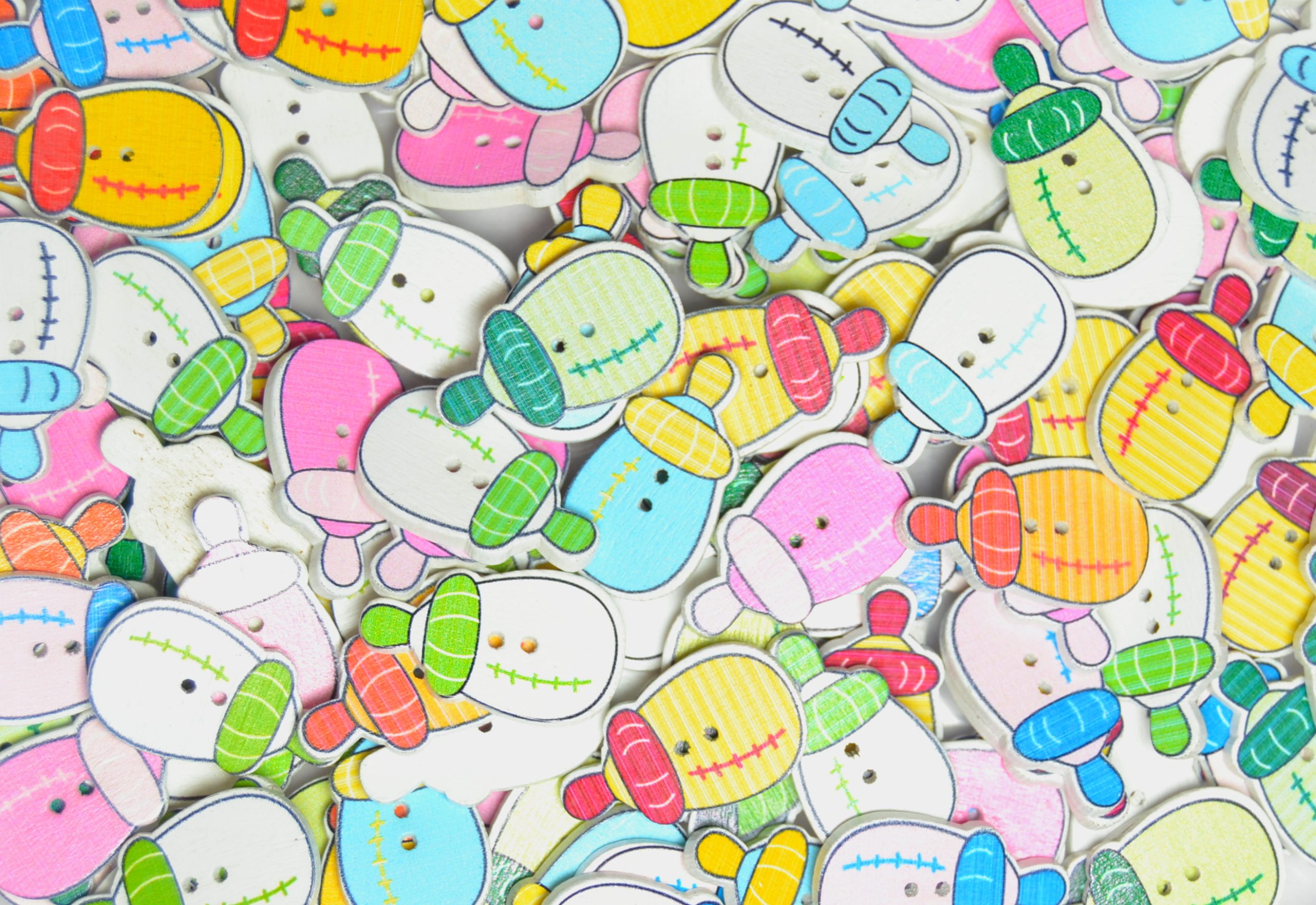 Printed Wooden Buttons – Unique Childrens Cartoon Designs for Sewing & Embroidery