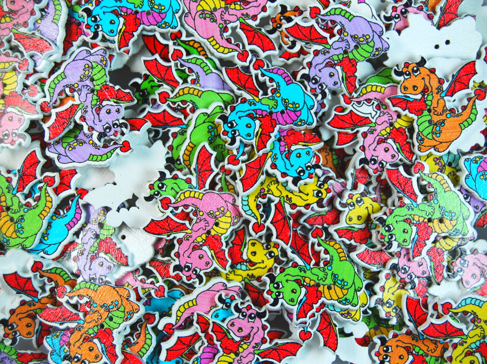 Childrens Character Printed Wooden Buttons (Dragon Type 1 – 31mm)