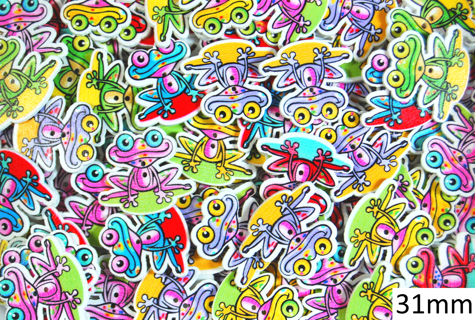 Childrens Character Printed Wooden Buttons (Frog Type 1 – 31mm)