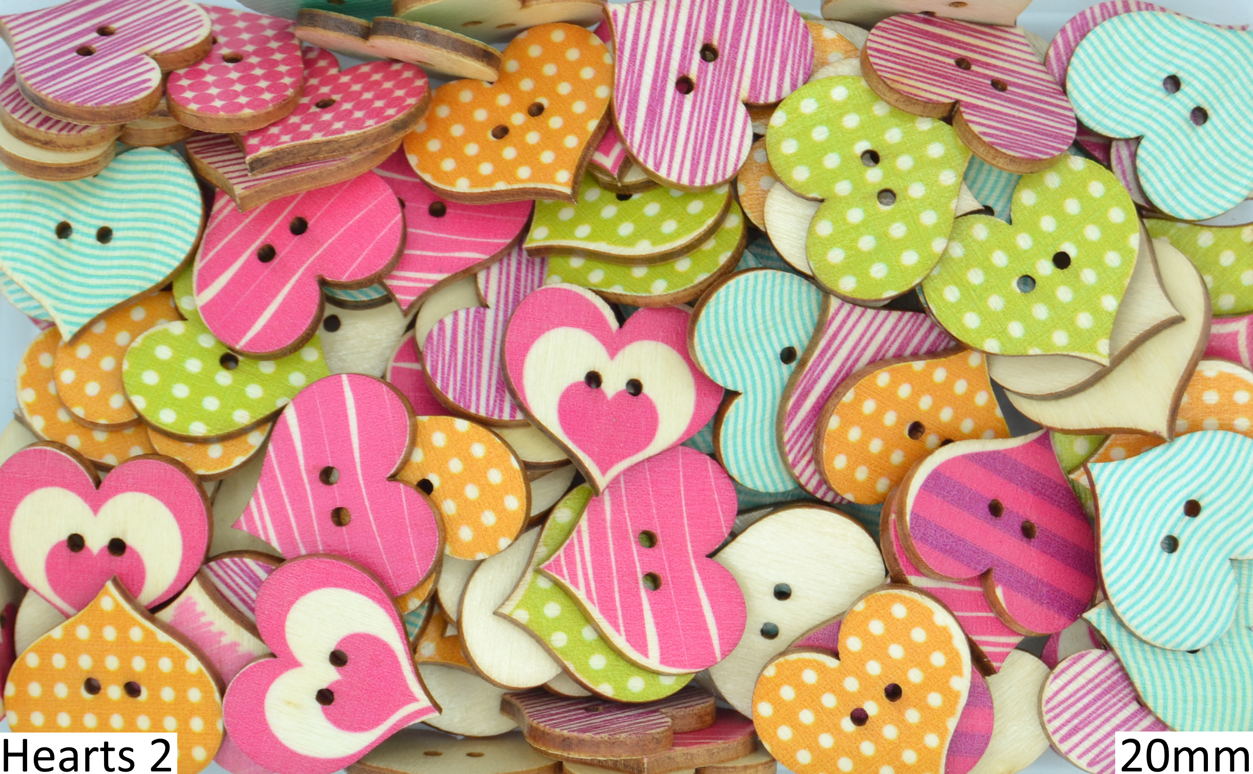 Wooden Printed Buttons (Hearts Type 2, 20mm)