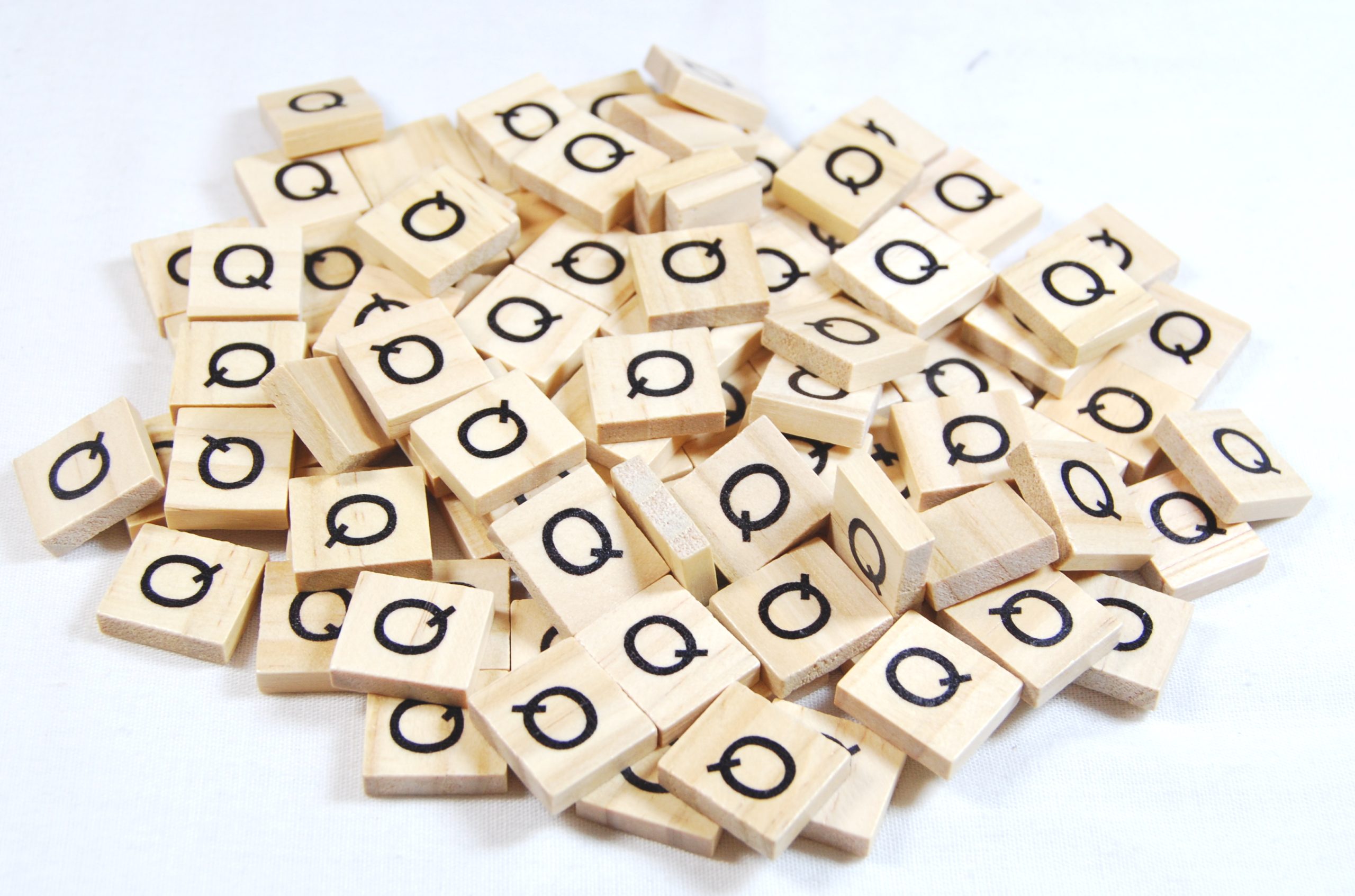 Same Letter Wooden Scrabble Tile Bags – Q – No Number Value