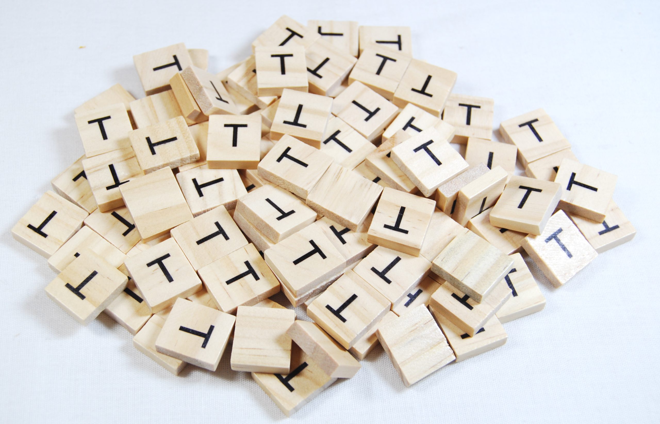 Same Letter Wooden Scrabble Tile Bags – T – No Number Value
