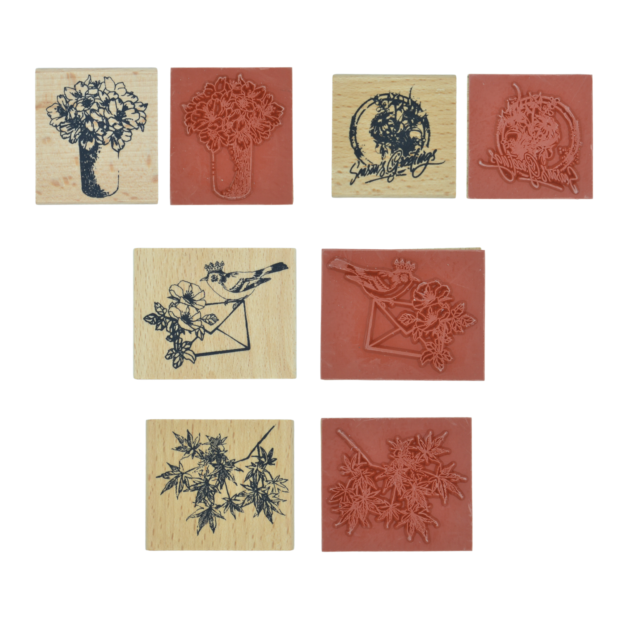 Set of 7 Rubber Stamps (Mixed 02) – Wooden Ink Stampers