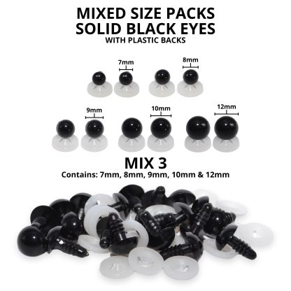 Solid Black Eyes Mix 3 – Dome Eyes with Plastic Backs