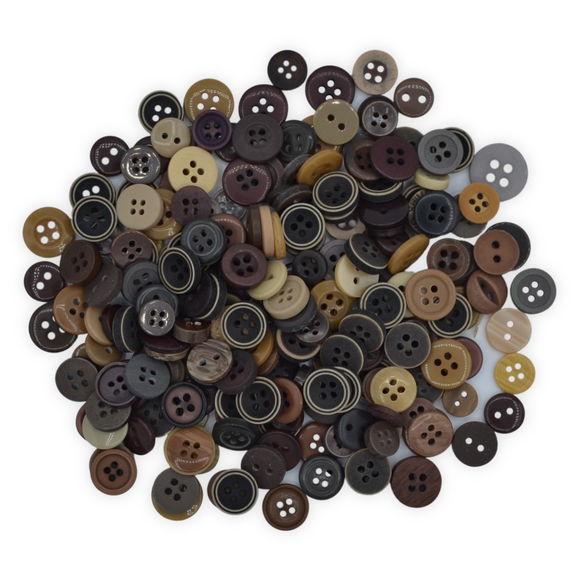 Mixed pack of tiny brown buttons.