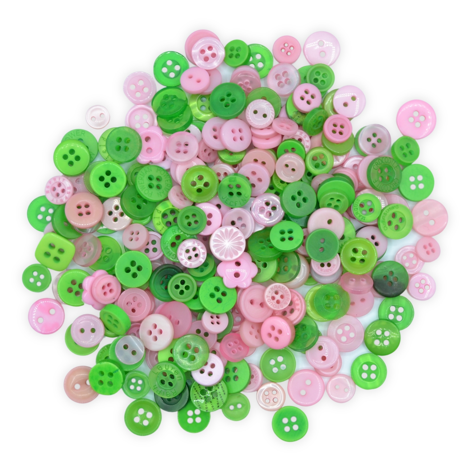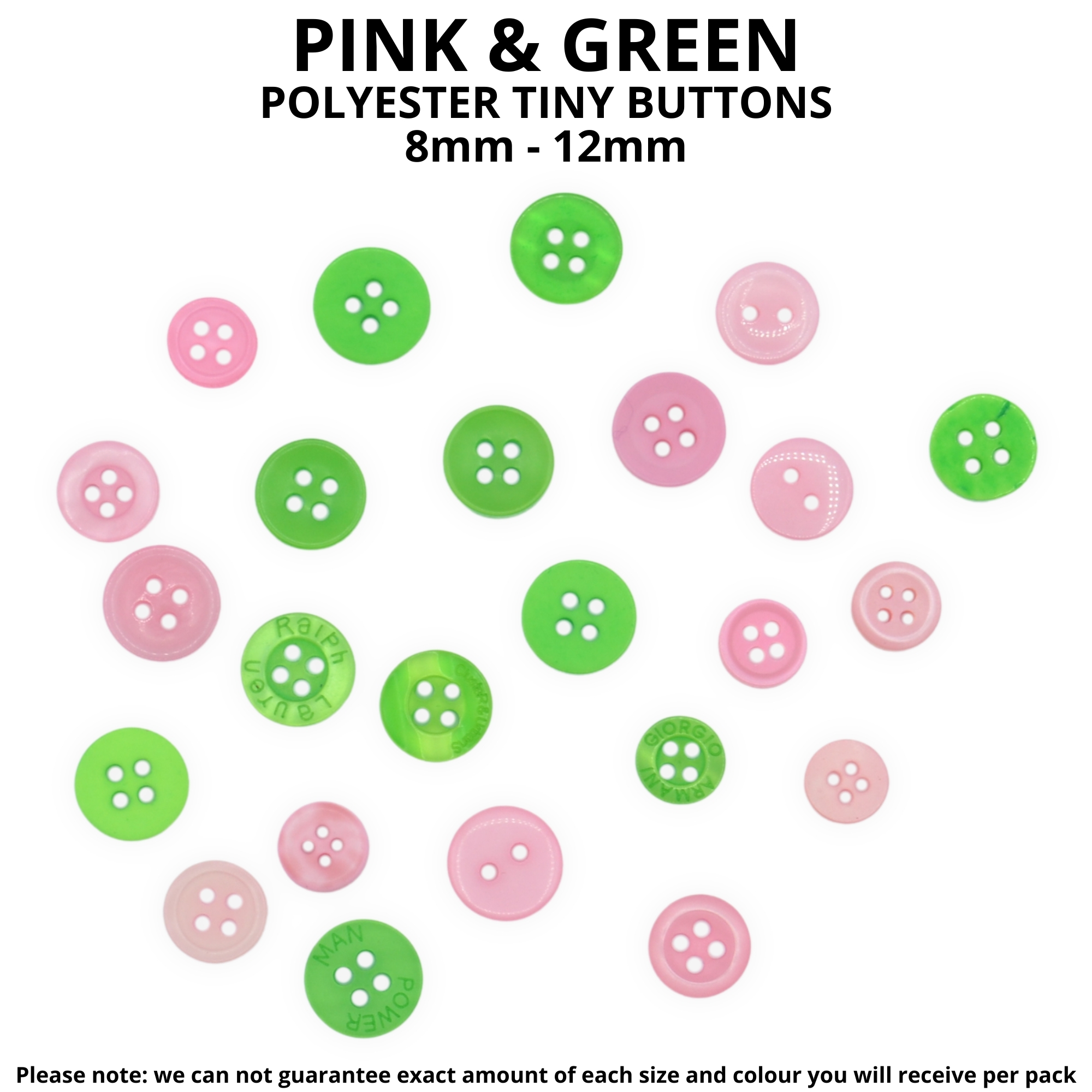 Tiny Pink & Green Buttons – Mixed Small Sizes