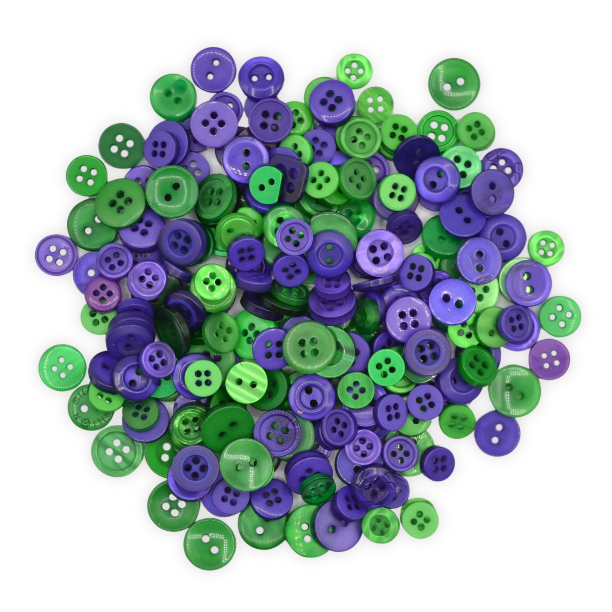 Mixed pack of small buttons. A vibrant selection of colours and sizes that can be used for many things. Scrapbooking, crafting, children’s play and sewing amongst them.