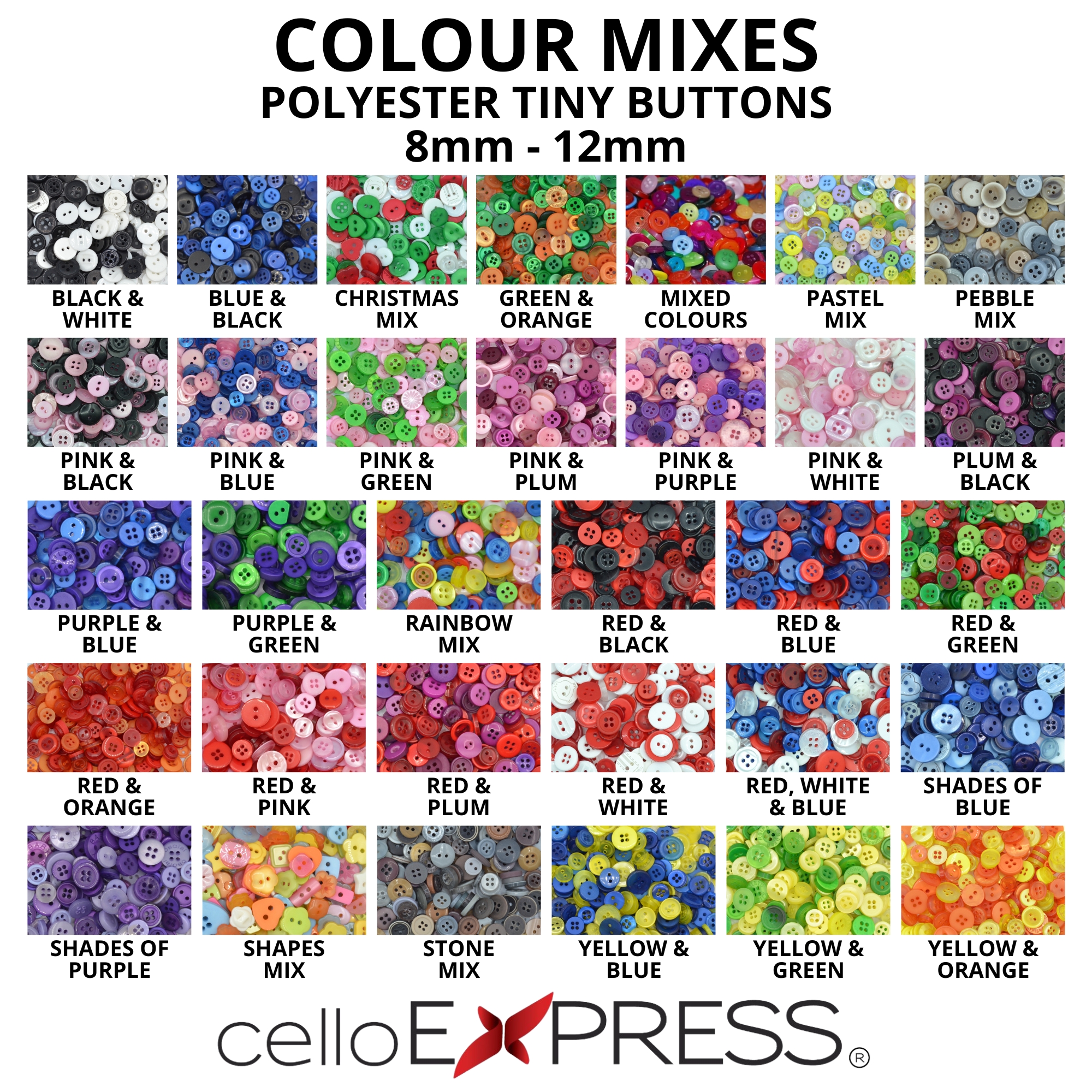 Mixed pack of small buttons. A vibrant selection of colours and sizes that can be used for many things. Scrapbooking, crafting, children’s play and sewing amongst them.